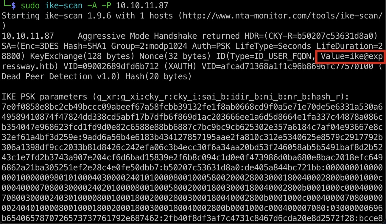 1 | sudo ike-scan -A -P 10.10.11.87 |